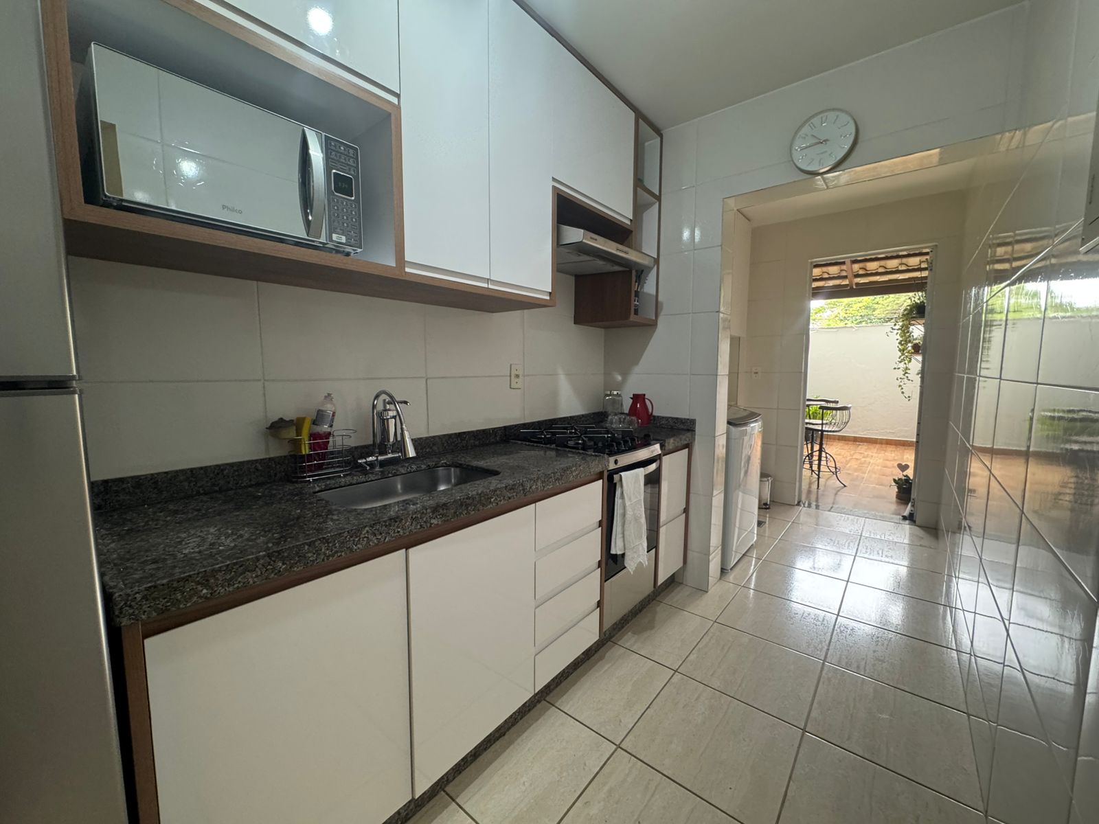 Cozinha funcional, já equipada com armários planejados, fogão e exaustor — pronta para uso imediato.