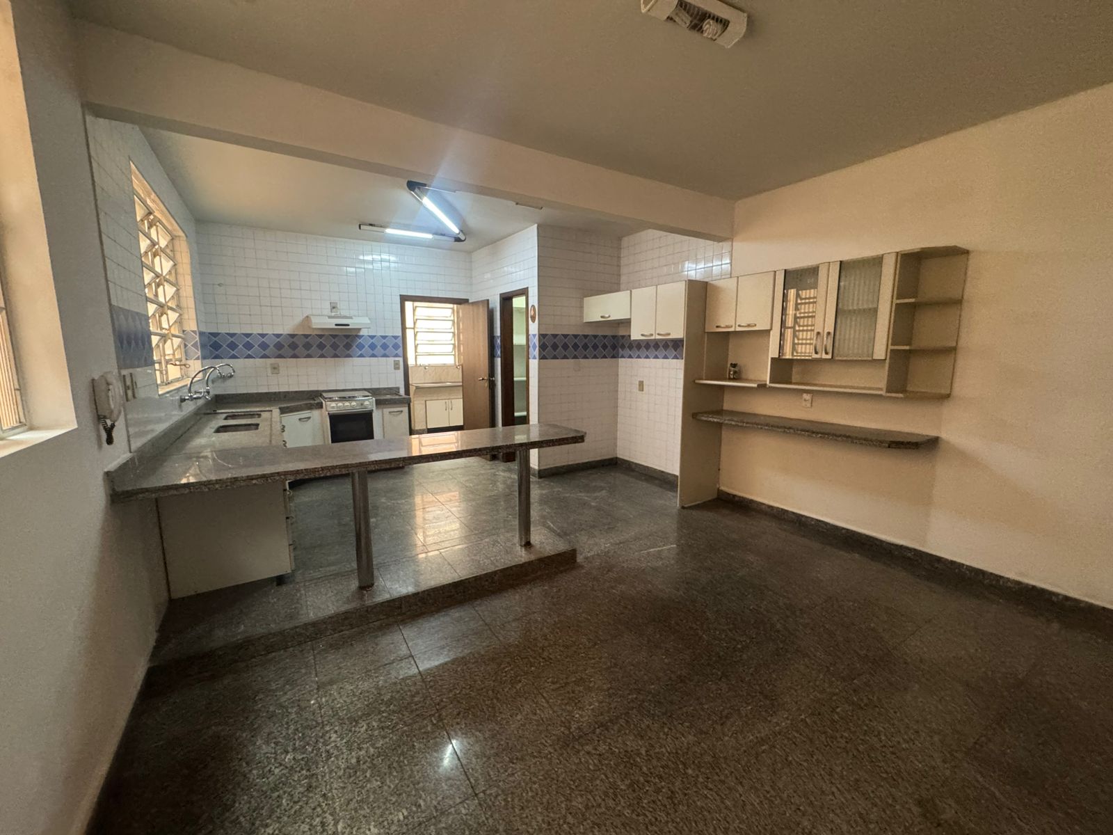 Piso todo em granito, proporcionando sofisticação e fácil manutenção